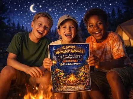 This engaging camping-themed Bible study printable is designed for ages 6–9.