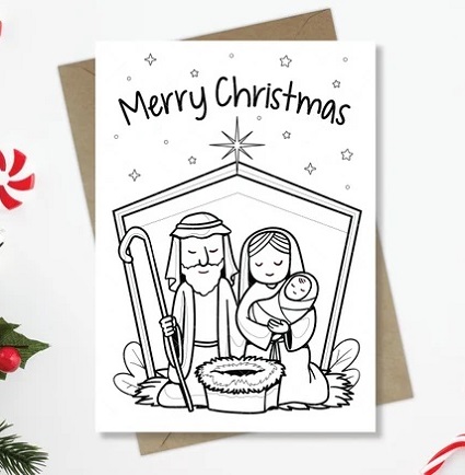 Christian Christmas Printable Coloring Doorhanger Card Craft