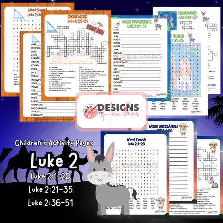 These 9 activities and games for Sunday School include: Birth of Jesus activities, crossword puzzle, word games, and 3 Luke activity pages.